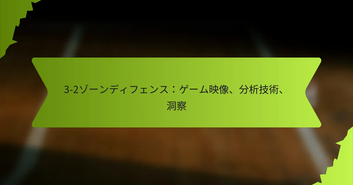 3-2ゾーンディフェンスは、外周と内部の保護のバランスを取るために設計された戦略的なバスケットボールフォーメーションで、3人の選手が外のシュートを守り、2人がペイントエリアを守ります。このディフェンスを理解するためには、試合の映像を分析することが不可欠であり、コーチや選手がリアルタイムでその効果を確認し、改善点を特定し、戦略を洗練させることができます。さまざまな分析技術を活用することで、パフォーマンスを評価し、効果的にディフェンシブタクティクスを適応させる能力が向上します。